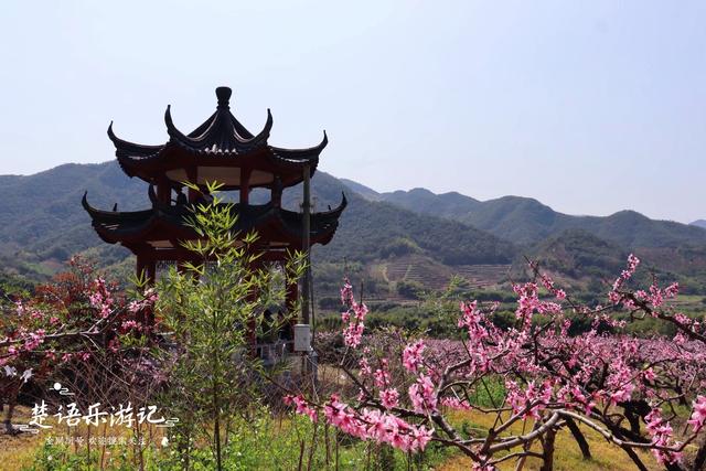 这条桃街的两旁是一大片桃园,里面栽种着150多种名优桃树,桃花盛开时漫山桃红,一点不比梅花谷的景色差。桃园的四周是连绵的青山 ,山脚下有观景凉亭,亭边是石阶步道、坐在亭子里可以欣赏桃花,也可以领略山色。