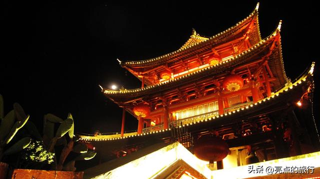 回到古城天色全黑,生活在古城的人们已经开始晚间娱乐。朝阳楼比白天更显得辉煌一些,朝阳楼下面的广场是建水人民休闲的大本营,白天老大爷们打牌下棋,晚上就是大妈们的各种舞姿。跳舞的人围成一圈一圈,各自合着不同的音乐。