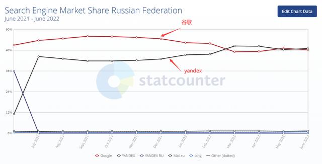 一系列原因,导致俄本土搜索引擎yandex的市场占有率增加。