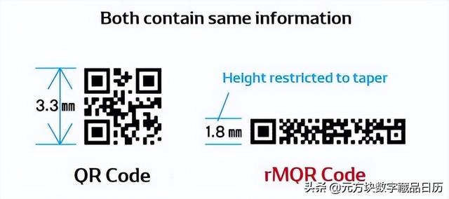 之前,日本公司Denso Wave宣布,一种“新型”的二维码——rMQR Code开发成功。于是,如今的二维码规格变成了三种,分别是微型二维码“micro QR Code”、广泛使用的二维码“QR Code”和新一代rMQR Code。这种新型的二维码只需要1.8mm的高度,而当前被广泛使用的二维码要5.3mm。也就是说,这种新型的二维码可以在更小的面积上使用。