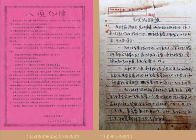 1960年2月16日,也就是工程开工第6天,引漳入林总指挥部颁布《八项纪律》,其中第五项纪律号召党员干部开展“五同”(与群众同吃、同住、同劳动、同学习、同商量解决问题),深入工地、深入群众,做到作战是指战员、生产是战斗员、施工是技术员、战地是宣传员、食堂是炊事员,坚决反对官僚主义和命令主义作风。