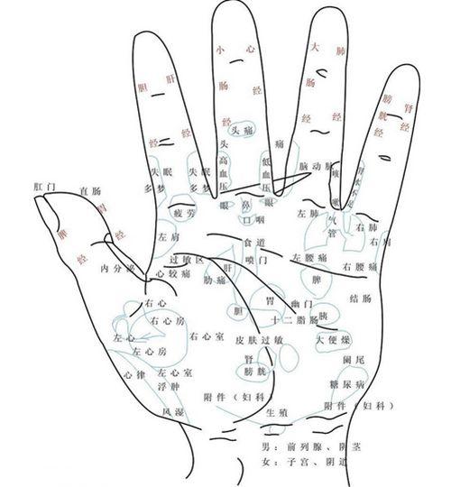 方位在腕横纹中心上方,这个区域标明泌尿和生殖体系功用的强弱。