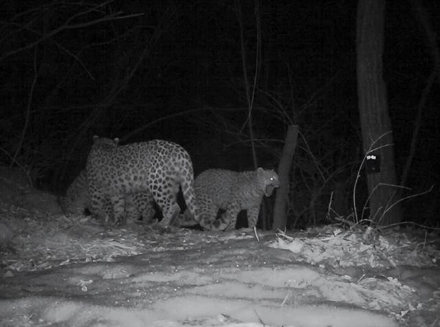 早在2012年的时候,架设在野外的红外相机也曾拍到过豹“母子同框”的画面,但像这般一家三口同时出现的场景,还是首次拍到。