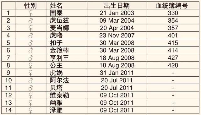 这两只雄虎和两只雌虎是全莉老虎谷的第一代成员,但是因为雄虎“希望”夭折,2005年的时候全莉从苏州动物园找到了成年的雄虎“327”用来替代“希望”。老虎谷的第一代华南虎通过不断的交配繁衍,到2012年老虎谷里已经有了14只华南虎,这个时候“希望”和“327”早都已经死亡了。