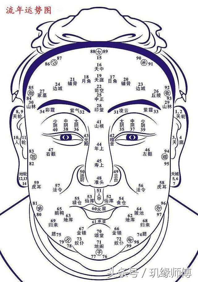 看不懂歌诀没关系,下面是面相流年部位图运气歌解释,如有不懂可以留言