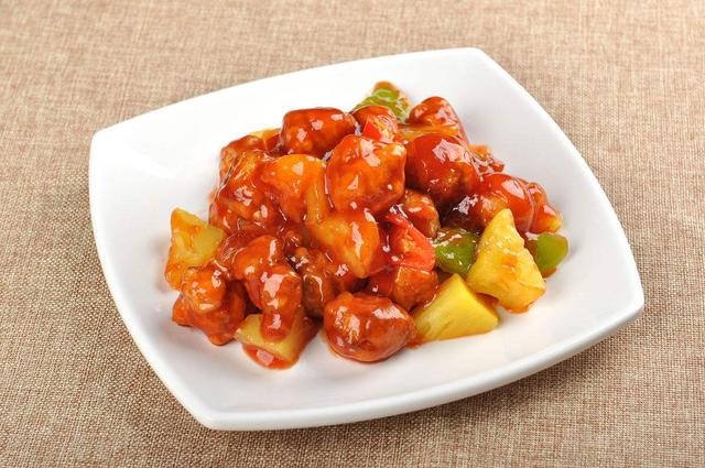 猪梅肉洗净后切块,放上两勺淀粉,一勺面粉,一勺食用油,搅匀成糊,然后将猪梅肉裹匀面糊,下锅炸至金黄酥脆后捞出来,接着锅里放点蒜末爆锅,然后下一勺番茄酱 一勺白醋,一勺白糖。
