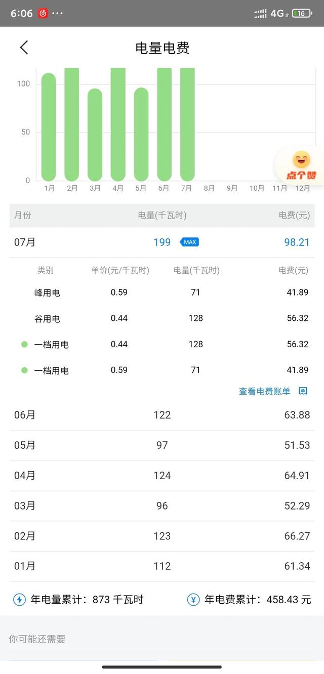 我们可以很清晰的看到峰段时用的电量和所耗的电费,也能看到谷段时用的电量和所耗的电费。
