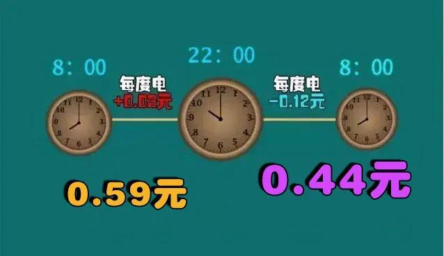我们知道河南的基本电价是 0.56元一度,而变更成峰谷电后,高峰时用电为0.59元一度,高峰时间段为早8点—晚10点。在这个时间段用电,比基本电价贵3分钱。低估时用电则是0.44元一度,低谷时间段为晚10点—次日8点。在低谷时用电比基本电价便宜1毛2分钱。