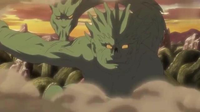 在鸣人开九尾查克拉模式时把九尾打残,九尾暴怒,想直接用超大尾兽玉解决鸣人,鸣人不再和九尾战斗,就用钥匙把腹部的封印锁上,明神门从天而降,当时九尾说:“这是六道老头子的……”