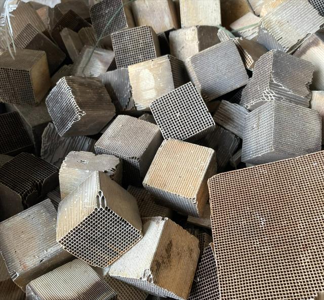 这是我们回收回来的,这个是从三元催化里面拆出来的,就是这个才值钱,里面含有非常贵重的金属,有铂金、铑金、钯金,都是稀有的金属,其中最贵的是铑金,现在的铑价格在4200一克,是黄金的价格的十倍了,我们回收的目的是把里面的稀有金属提炼出来。正因为价格那么贵,所以以前有很多人去偷别人的三元催化,我们如果看到时偷来的都是不收的,老铁们,一些偏僻的修理厂要注意一下!