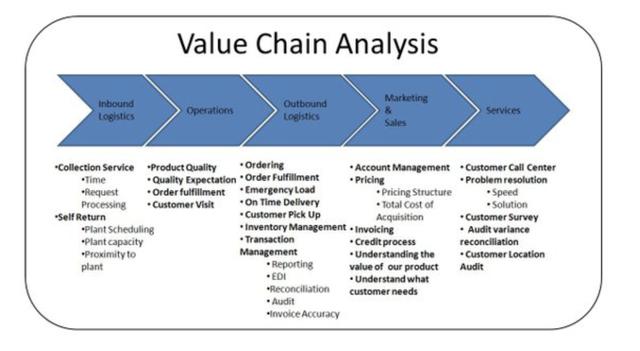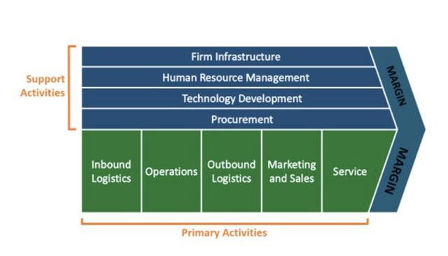 在 1980 年代,Michael Porter 引入了一种称为价值链分析的技术,该技术已成为帮助公司获得竞争优势的有用工具。价值链分析关注企业的内部活动,以了解企业的成本以及不同的活动如何为其产品或服务增加价值。