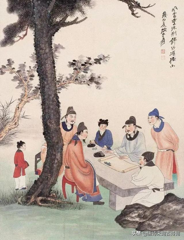 他们二人举杯畅饮,敲击杯盘吟诗作对,虽然刘禹锡诗作成就名扬天下,但是还是要面对他人风光升迁而自己壮志难酬的现实。白居易不忿道,虽说人经历不顺是常有之事,但是刘禹锡被贬谪二十三年,不免磨难太多,世道不公啊。
