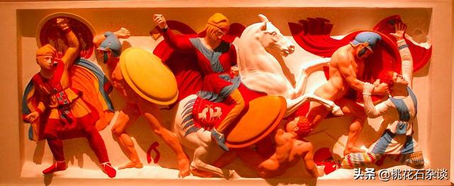 古希腊石棺浮雕里的希腊人与波斯士兵作战场景(现代复原上色)