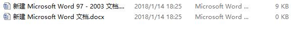当我们创建一个空的文档文件的时候,可以发现加了x的新文件所用空间更小: