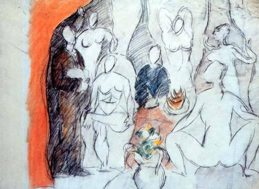 同时这些形象使人观后产生作呕感。当诗人把这些形象与亚威农相联系时,观众似乎受了侮辱一般,责骂毕加索的鄙俗。