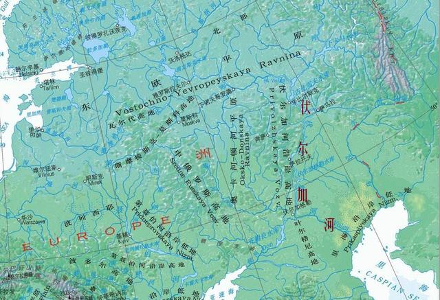 伏尔加河发源于东欧平原西部的瓦尔代丘陵中的湖沼间.全长3692公里,最后注入里海,流域面积达138万平方公里,占东欧平原总面积的三分之一,是欧洲第一长河。伏尔加河河源处海拔仅有228米,而河口处低于海平面28米。从距河源不远的尔热夫算起,往下3000多公里的河段内,总落差仅有190米,因此河水流速缓慢,沙洲、浅滩、牛轭湖、废河道广为分布,是一条典型的平原河流。