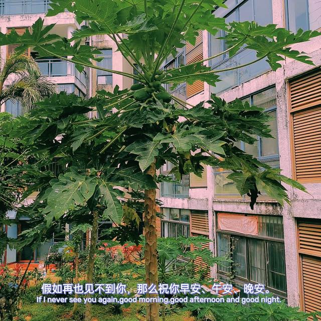 海南的小区里种了三角梅、鸡蛋花树、波萝蜜、美人蕉、我印象最深的是椰树,看了孩子的作文让我知道印在他们记忆深处的就是这棵木瓜树了。曾经的那棵由她们自己种的,在童年里陪伴她们追逐欢笑地长在自家门口的木瓜树。