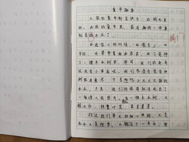 女儿关于童年趣事的作文老师给了个优评,还加了个颗星,女儿的作文写道: