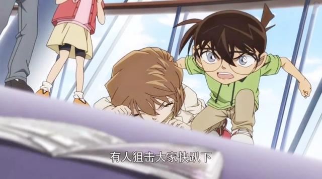 剧场版中柯南经常扑倒灰原哀,第十八集《异次元的狙击手》中,柯南受邀来到一个观光风景的眺望塔玩耍,此时灰原当然也是陪同的,但是忽然出现了狙击事件,柯南第一反应就是保护灰原哀,一把将灰原摁在地上,这动作有点霸道总裁的意思了啊,这次不扑倒了,货真价实的摁在地上摩擦了,看灰原那表情,很疼吧。