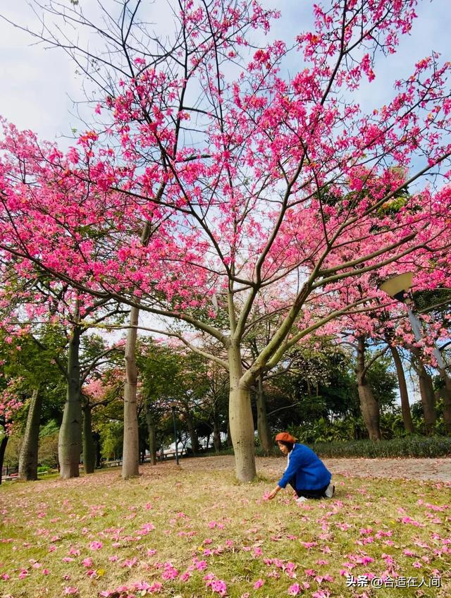 那一年我正为毕业课题和找工作这两件事而焦头烂额。那一趟广东之旅,解决了工作的问题,心情轻松许多。车窗外,广东冬天阳光灿烂,蓝天白云下,路边依旧有花在怒放,高大的花枝随风而摆,花影婆娑,时不时地有花瓣稀稀疏疏地落下,将地面铺成了粉红的地毯,看得人赏心悦目,烦恼顿消。在我看来,它绝对是冬天里最惊艳的花。