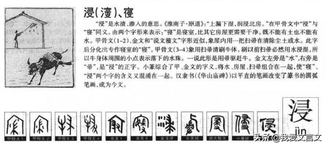 - 指“渗入,渗透”。如《送丰城王少府》:“离亭隐乔树,沟水浸平沙。”