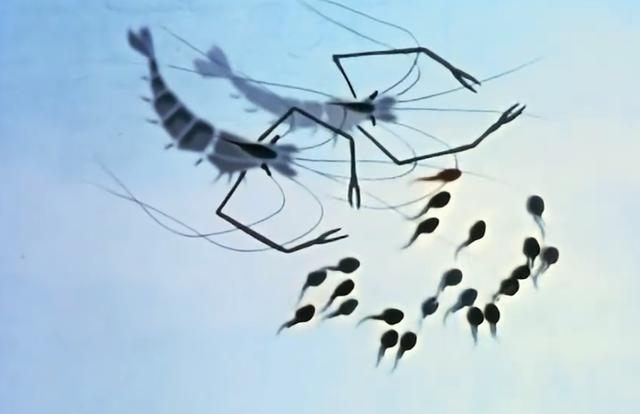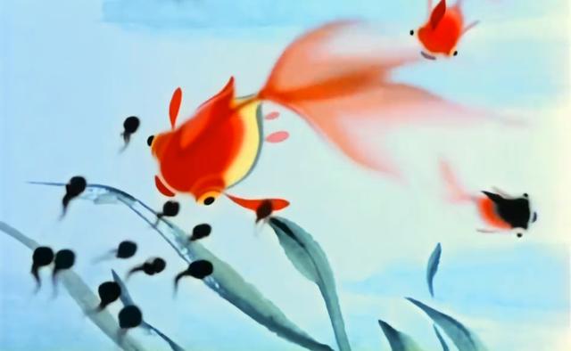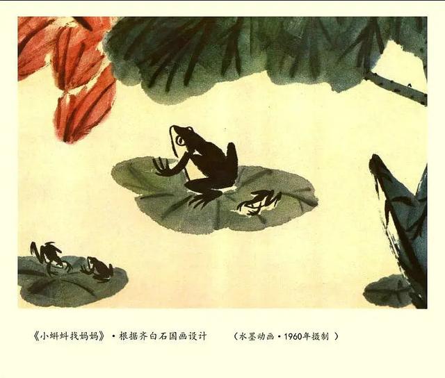 《小蝌蚪找妈妈》的故事发生在池塘里,影片中无论是背景还是小动物,都借鉴了水墨画中的写意花鸟。