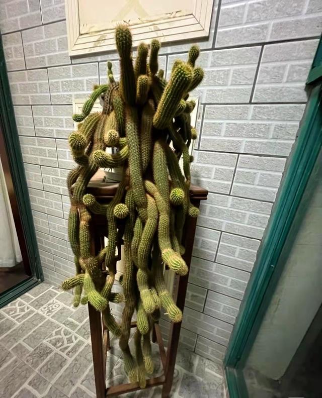 小伙说:当初是看网友养的仙人指很容易开花,没成想自己这盆养了十多年从没开过花,都怀疑它自我绝育了。但是这家伙越长越长,要碰它又怕刺,要扔又舍不得,如今高架的空间已经不够它长了,不知道拿它怎么办。