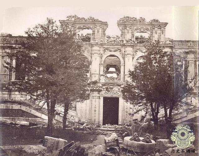 第二次鸦片战争,英法联军闯入圆明园,对园内奇珍异宝进行打砸掳掠,容易携带的就抢走,带不走的就地砸坏,据粗略统计,英法联军在圆明园至少抢走150多万件文物,包括先秦时期的青铜器,和其他各朝各代的珍品稀宝。照片为圆明园海晏堂,拍摄于1872年。