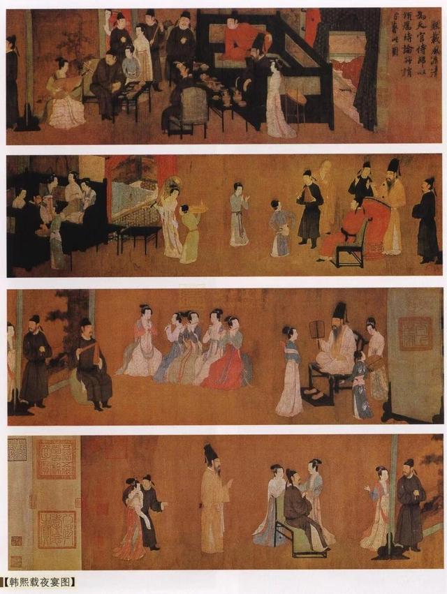 《广博物志》说:“神农氏发明床,少昊始作篑,吕望作榻。”汉代刘熙在《释名·床篇》中解释说:“人所坐卧曰床。”又说道:“长狭而卑者曰榻。”《说文》也说:“床,身之安也。”由此可见,“床”与“榻”是不一样的。“榻”最早出现于西汉后期,它是以坐具身份出现的。从今天出土的文物来看,榻看起来像是一种低足的平台,有的带有高围屏风,有的在屏风上还挂有装饰,且大多是供一个人独坐的。我们从南唐画家顾闳中的《韩照载夜宴图》中看到。图中有两件榻,其中一件榻上同时坐五人而绰绰有余。同时,在它的左右与后面都装有围板,其构造基本与后来的明清罗汉榻一致,只是围板要高得多。