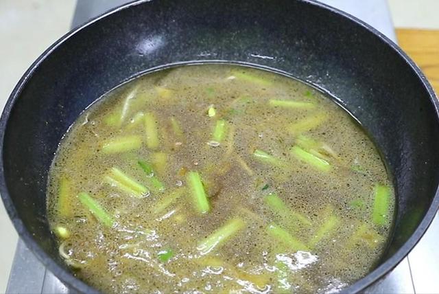 2.锅内烧油 油温五成热时放入肉丝炒出香味,闻到肉香味以后放入葱花、姜片一起翻炒,加入一点老抽上色翻炒均匀,放入芹菜、黄豆芽、开大火炝出香味,沿锅边加入两碗清水,加入适量的食盐、鸡粉、胡椒粉、十三香、生抽调味,面汤要稍微咸一点煮出来的面条才咸淡适中,盖上锅盖,大火把汤烧开。