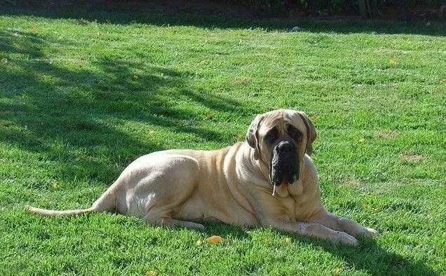 2、马士提夫犬的智商不是很高,在狗界智商排名中,名列第72位,不过它却是是目前世界上体型最大的犬种之一,雄性成年的马士提夫犬的身体非常魁梧,肩高一般在76.2厘米左右,雌性成年犬的身体结构坚实,肩高一般在70厘米左右,体重在68~100公斤之间。马士提夫犬的战斗力非常强,能和熊和狼搏斗,是一种非常合格的大型猎犬和护卫犬。