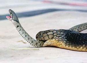 在实战中,眼镜王蛇的免疫毒素和毒液都是肉搏战才能派上用场的,它们高超的智力还体现在战斗技巧上。眼镜王蛇凶猛而又灵活,头部可以随意扭动,在捕食毒蛇时,它会展现与其他蛇完全不一样的进攻方式,眼镜王蛇不会轻举妄动,而是想一个久经擂台的拳手一样,不断的挑衅对方,当对方终被激怒向它发起进攻时,眼镜王蛇会机警地躲闪,最后猎物身心疲惫、无心恋战时,他又会利用自己的速度追上对方继续挑衅,直到它看准机会,一口咬住猎物头颈并释放毒液将其快速杀死为止。