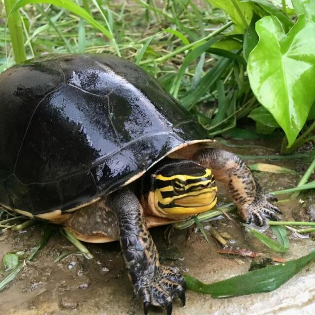 安布闭壳龟,也叫做马来闭壳龟,分布在孟加拉国,马来西亚等等东南亚国家。严格来说并不属于温带的龟种了。安布的背甲通体呈黑色,成体的背甲中央隆起较高,腹甲是呈现出淡黄色。之所以叫做闭壳龟,就是因为安布的腹甲和背甲能够完全地闭合。