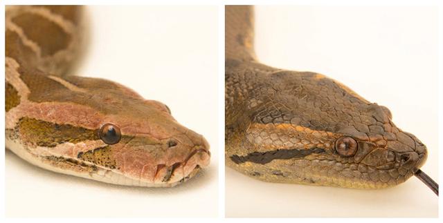蟒蛇的眼睛间距会比蚺蛇宽一点点,