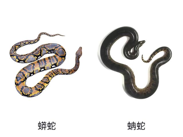 蟒的嘴部会比蚺的嘴部长一点点