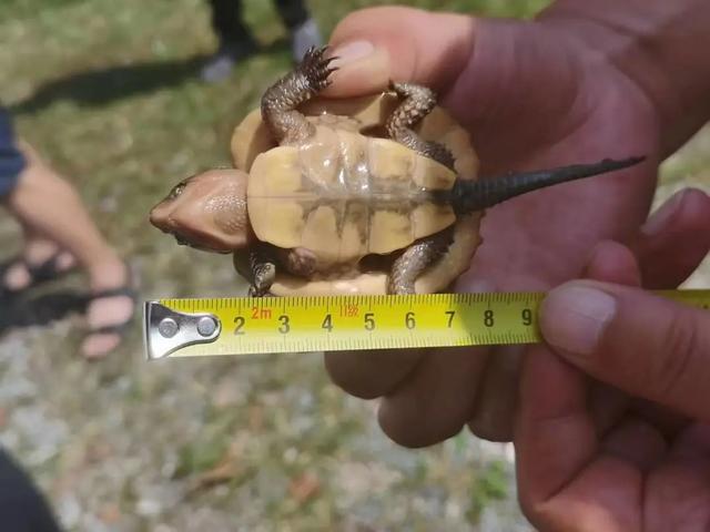 平胸龟又称鹰嘴龟,是我国淡水龟中最为特殊的一种,主要生活在山润清澈的溪流中,对水质、环境要求较高。然而,由于环境质量下降,栖息地遭到破坏,目前在野外已极其罕见,其野生种群被列入《中国国家重点保护野生动物名录》(二级)、《中国濒危动物红皮书》(濒危)、《中国生物多样性红色名录—脊椎动物卷》(极危)等。“此次在都庞岭自然保护区再次发现野生大头平胸龟,得益于该保护区的生态环境持续改善。”团队成员、动物学专家李自君说。