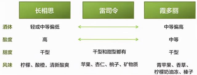 霞多丽、长相思和雷司令这 3 者有何区别?