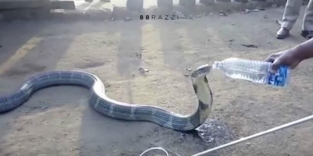 眼镜王蛇作为世界上最大的蛇类,体长约5米,体重达几十斤,仅次于蟒蛇。眼镜王蛇吃眼镜蛇、吃蟒蛇、吃巨蜥等等,一直以来都是以凶猛著称,而最近还有一段关于眼镜王蛇在47摄氏度高温下,顺从地找人降温。