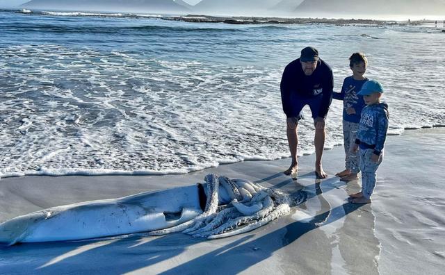 综合外媒报道,南非被冲上海岸的巨鱿体型大得惊人,它同时也是世上最难以捉摸的深海生物之一,人们一般在海边很难见到它的踪影,就连研究人员也是到2001年才首次见到活着的深海巨鱿。