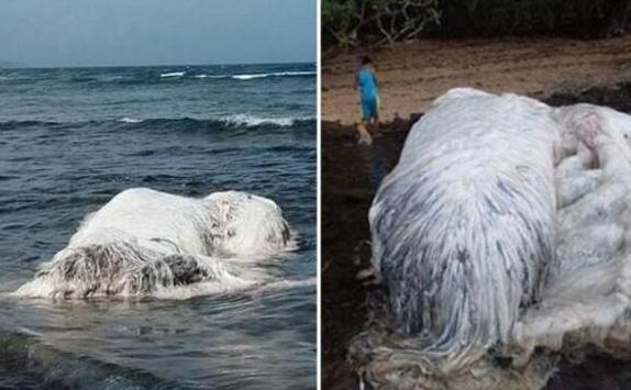 2、 俄罗斯库页岛也发现了一具神秘海怪无法被认知,四分五裂的尸体,油巨大的鼻子,全身都有毛发,有人假设它是一种多毛海豚的物种,但是至今也没有任何的定论。