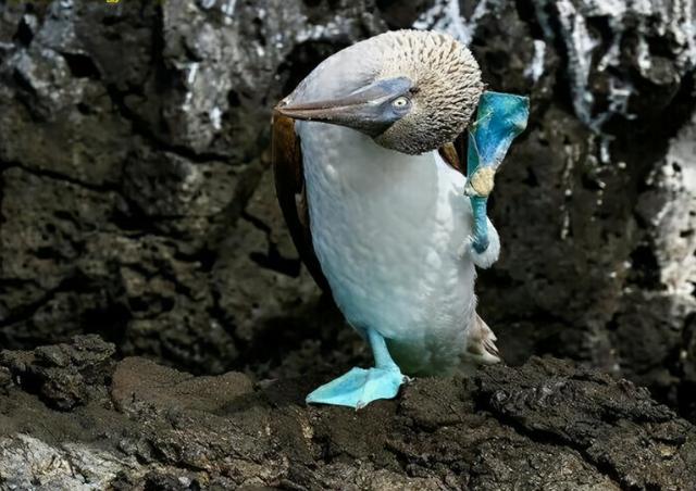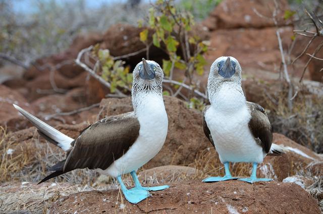 所以雄性蓝脚鲣鸟在求偶时的舞姿就是来回抬脚给雌鸟看,脚的颜色才是最有说服力的,脚色越蓝的雄鸟会更受雌鸟欢迎。