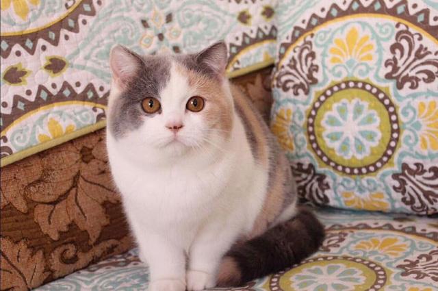 三花色的英短,由蓝色、乳色、白色三种颜色构成,三花猫大多数为母猫,英短三花看起来像杂交的,颜值一般,所以价格没有很贵。