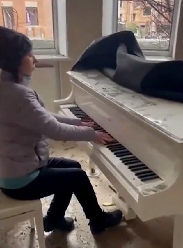 之前,有网友上传了一段视频,画面中是一位女士在被炸毁的家中弹奏钢琴。
