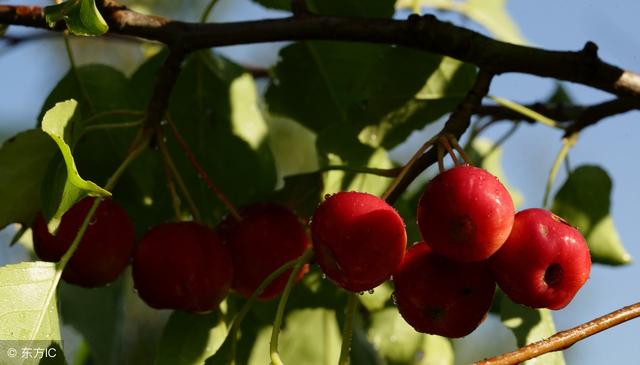 等到了9月份的时候,海棠果也就成熟了。这种果子长得很像苹果,只是个头要小很多,一般最大的也就是鸡蛋般大小,所以在北方地区也把海棠果称之为“小苹果”、“野苹果”等。海棠果在没有成熟的时候是青色的,而当它变成了红色之后,也就意味着成熟了。并且香气浓郁,老远就能闻到海棠果的香味,看到它更是想要采摘下来尝一尝。
