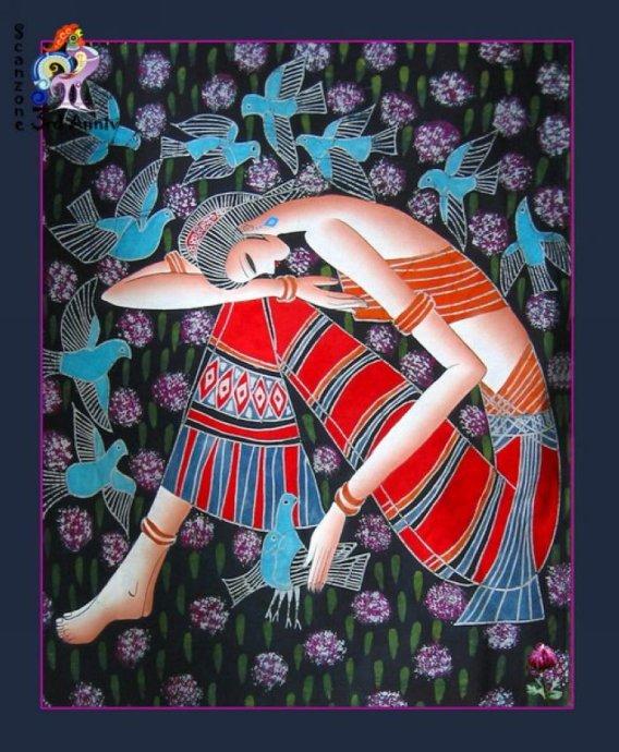 蜡染画艺术,古称"蜡缬", 是中国传统的民间印染工艺之一。 其制作方法是用熔化的黄蜡在白布上绘制图案,染色后煮去蜡质,就呈现出白色图案。用蜡染工艺制成的壁挂及其他工艺品,极富民族特色。蜡染这一古老工艺始于汉代,盛于唐代, 从我国的染织技术开创时,蜡染就作为最古老的手工艺,是中华民族古文明的一部分,至今仍在中国贵州、云南等少数民族地区中流行。