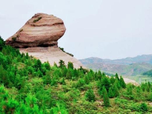 在它的不远处,有一块巨大的石头,叫“蛤蟆石”。话说“棒槌山一倒,蛤蟆石就跑。”如果你仔细观察,就会发现,蛤蟆石正处在棒槌山砸不到的地方,就好像一只巨大的蛤蟆为了躲避倒下的棒槌山,慌不择路地逃跑了呢!从另一端望去,它那微张的嘴仿佛在喘气呢。
