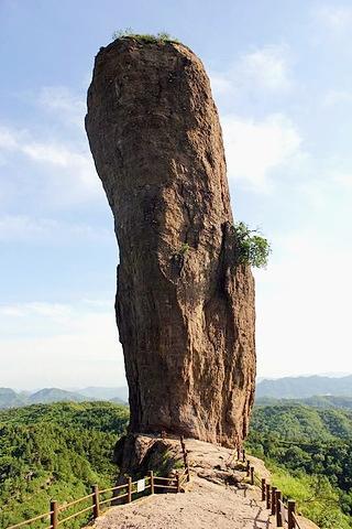 磬锤峰国家森林公园以奇山异石、丛林繁茂的自然风景取胜,众多珍贵名木植物,珍禽异兽,在这片森林公园可以看到,然而来到磬锤峰国家森林公园主要是冲着山顶一块巨型石头儿来,这块石头就是久负盛名的(棒槌山)远远望去就是妇女洗衣服的一个棒槌、也因此引入人们很多奇思妙想、在群山环抱中屹立在山顶,威武雄壮,俯瞰大地苍生、又像一个酒瓶倒立着,几千年来本地人一直称棒槌山(现代普通话称呼“上帝的手指”)这个称呼似乎得到游客的认可。