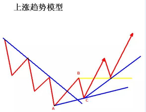 如果回调的低点高于A开始向上运行形成次低点C,如果有效突破B点,则低位ABC成立,多方占优。最终判断上升趋势形成。低位ABC要符合三条原则:一是突破下跌趋势线;二是C点必须高于A点;三是股价必须突破B点。