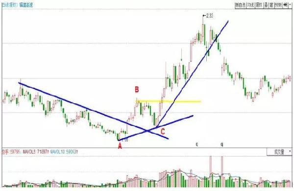 通过福建高速案例,可以看出,当在下跌过程中出现低位ABC时,量能也配合的非常好,可以确定行情已经反转,在股价突破B点所在的位置时,买入时机出现。投资者朋友们可以参照低位ABC来选出行情已经翻转并且开始发动的个股。