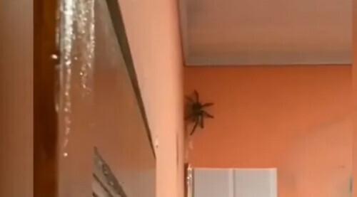 这段视频显示,这户人家的墙上趴着一只巨大的蜘蛛,它伸出长长的、毛茸茸的腿,在房子里走来走去,模样十分恐怖。视频背景中可以听到慌乱的声音,一名女子喊道:“必须让它从窗户出去,否则它就会留在屋子里。”目前还不清楚蜘蛛是什么品种,但它的体型让人们毛骨悚然,人们认为它是“世界上最大的蜘蛛”。